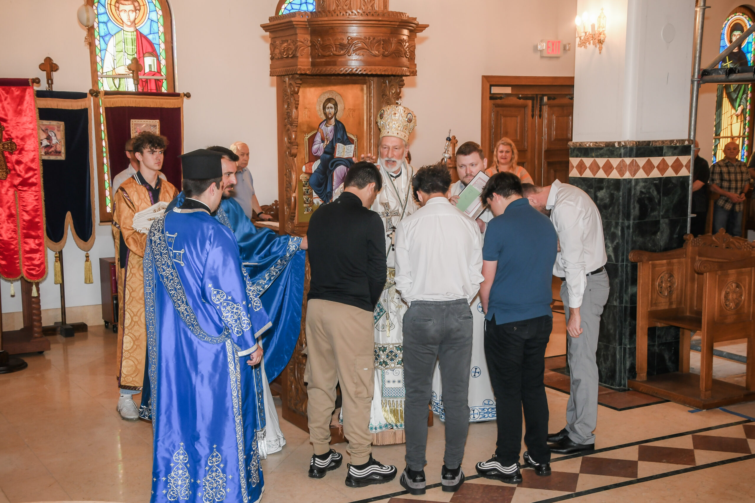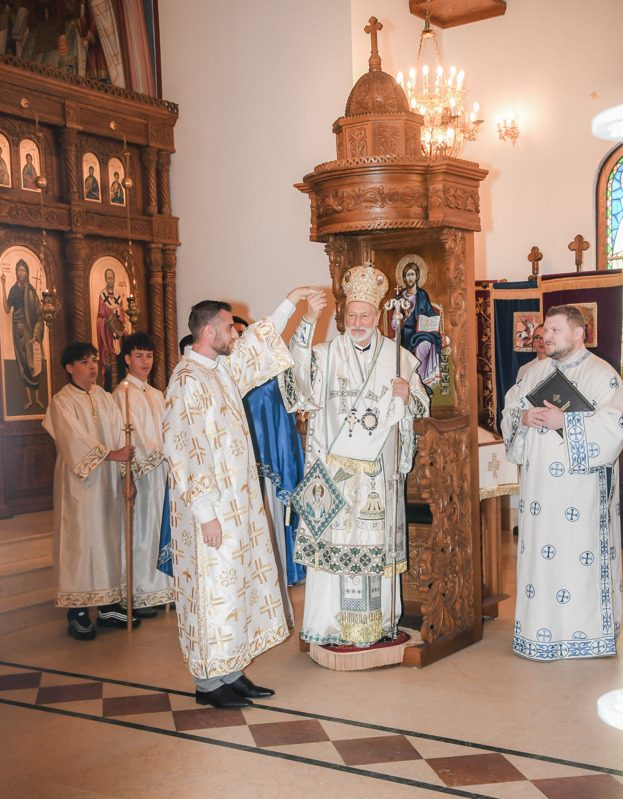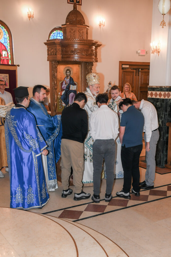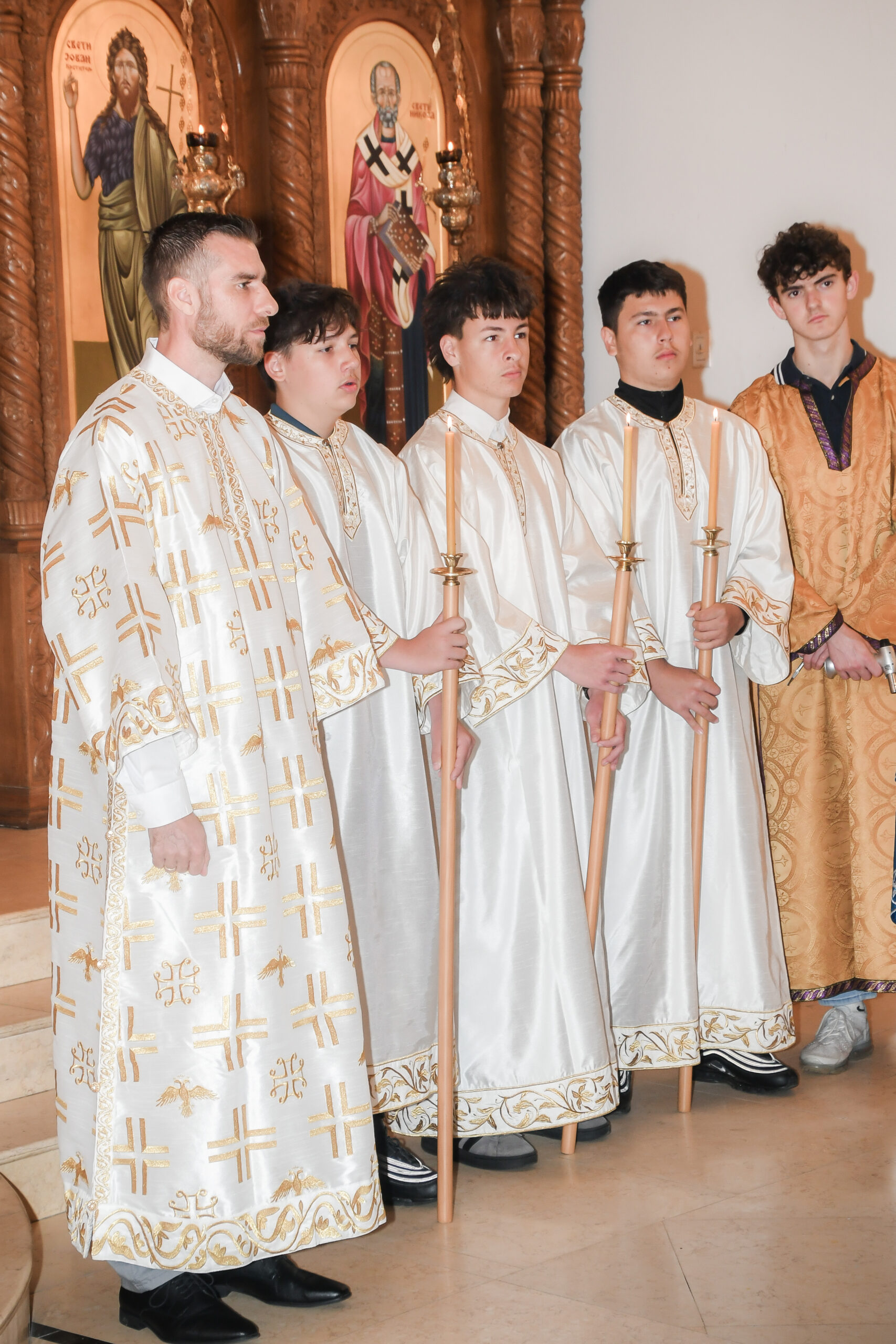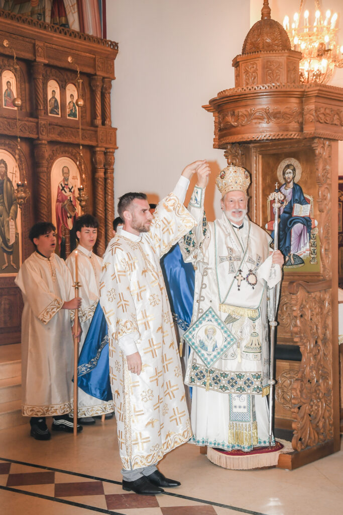 On this occasion, before the beginning of the Holy Liturgy, Bishop Irinej set apart three young gentlemen Vuk Veselinović, Maksim Ždralić and Luka Mutlak to the rank of acolyte, and tonsured Mr. Gjorgi Stojanov to the rank of reader. In his admonition following the elevations, His Grace congratulated the young men on their having been set apart, and wished them honorable and diligent service to their Church.