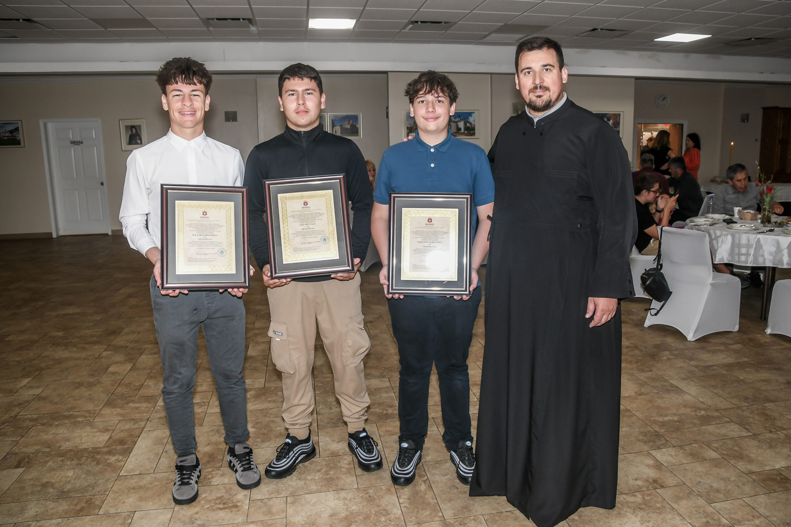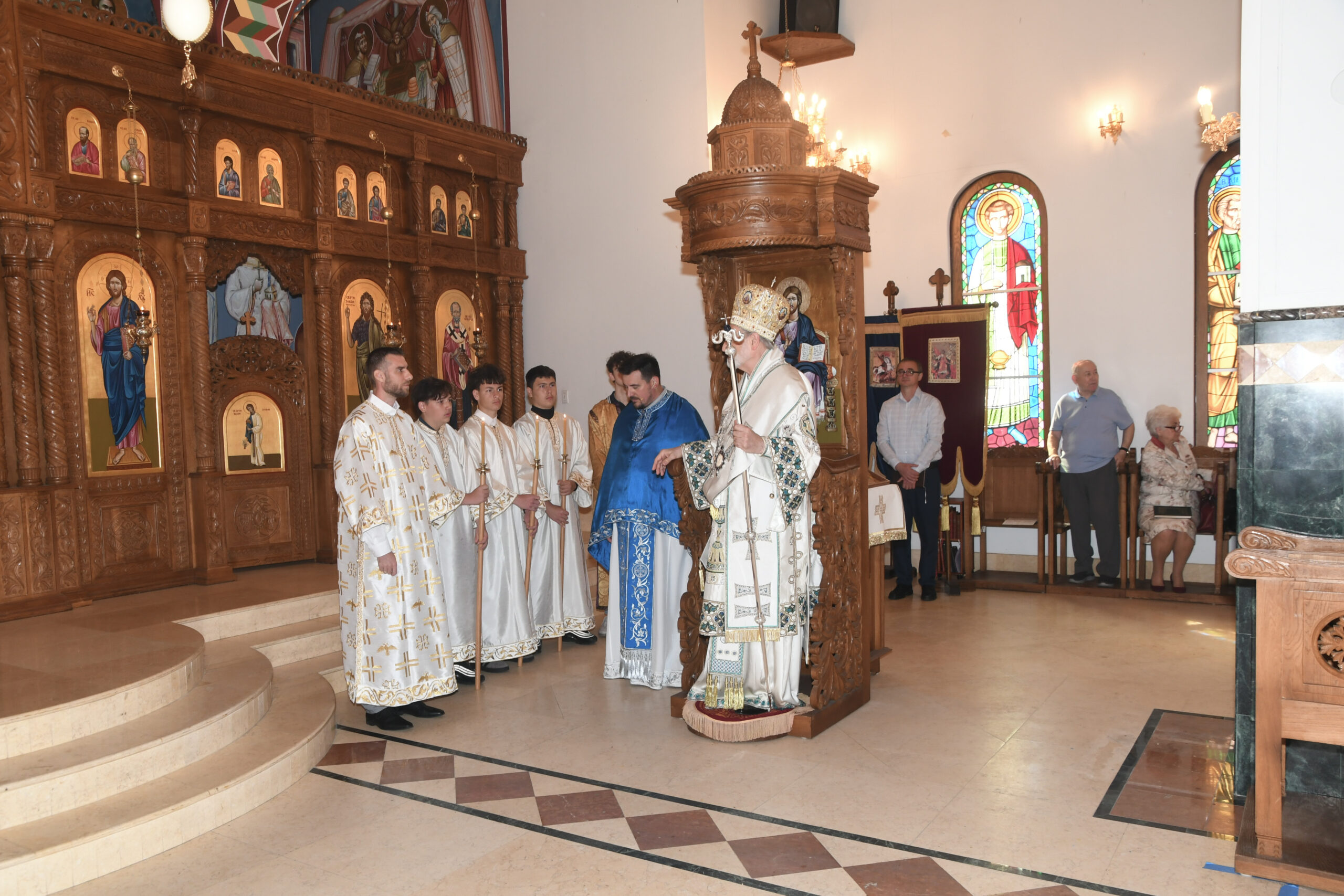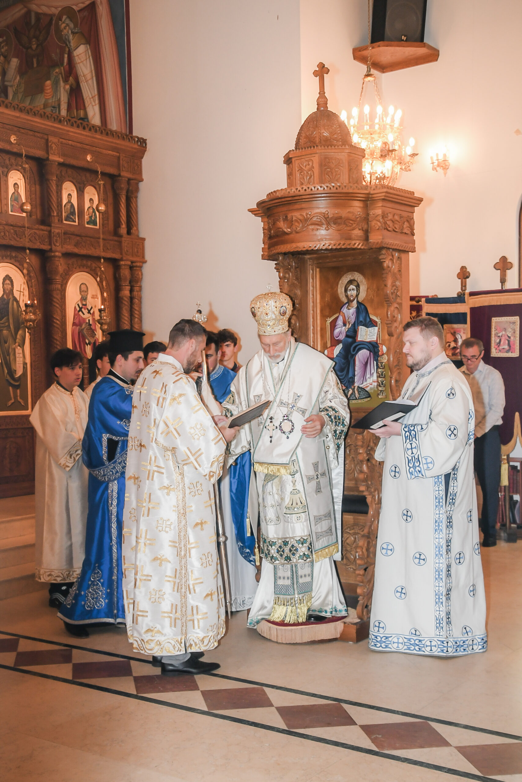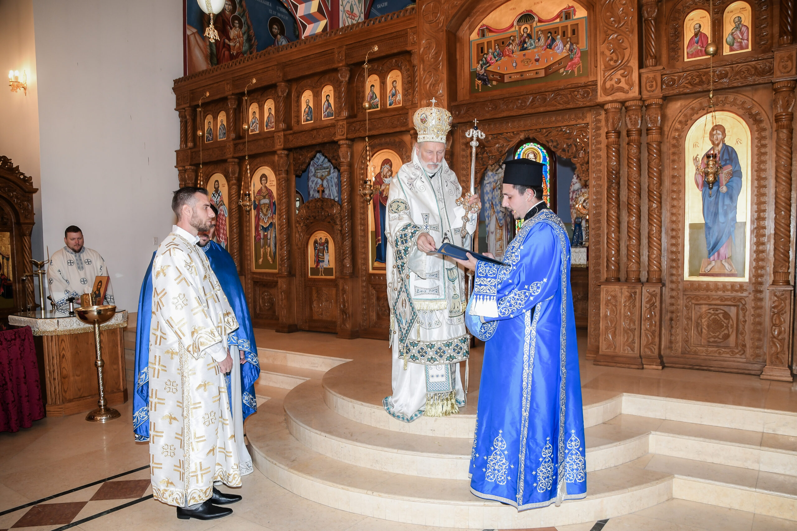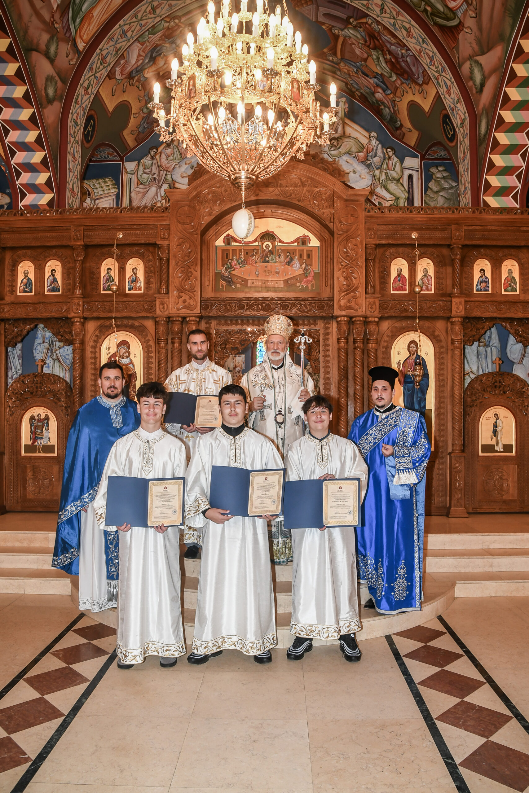 On this occasion, before the beginning of the Holy Liturgy, Bishop Irinej set apart three young gentlemen Vuk Veselinović, Maksim Ždralić and Luka Mutlak to the rank of acolyte, and tonsured Mr. Gjorgi Stojanov to the rank of reader. In his admonition following the elevations, His Grace congratulated the young men on their having been set apart, and wished them honorable and diligent service to their Church.