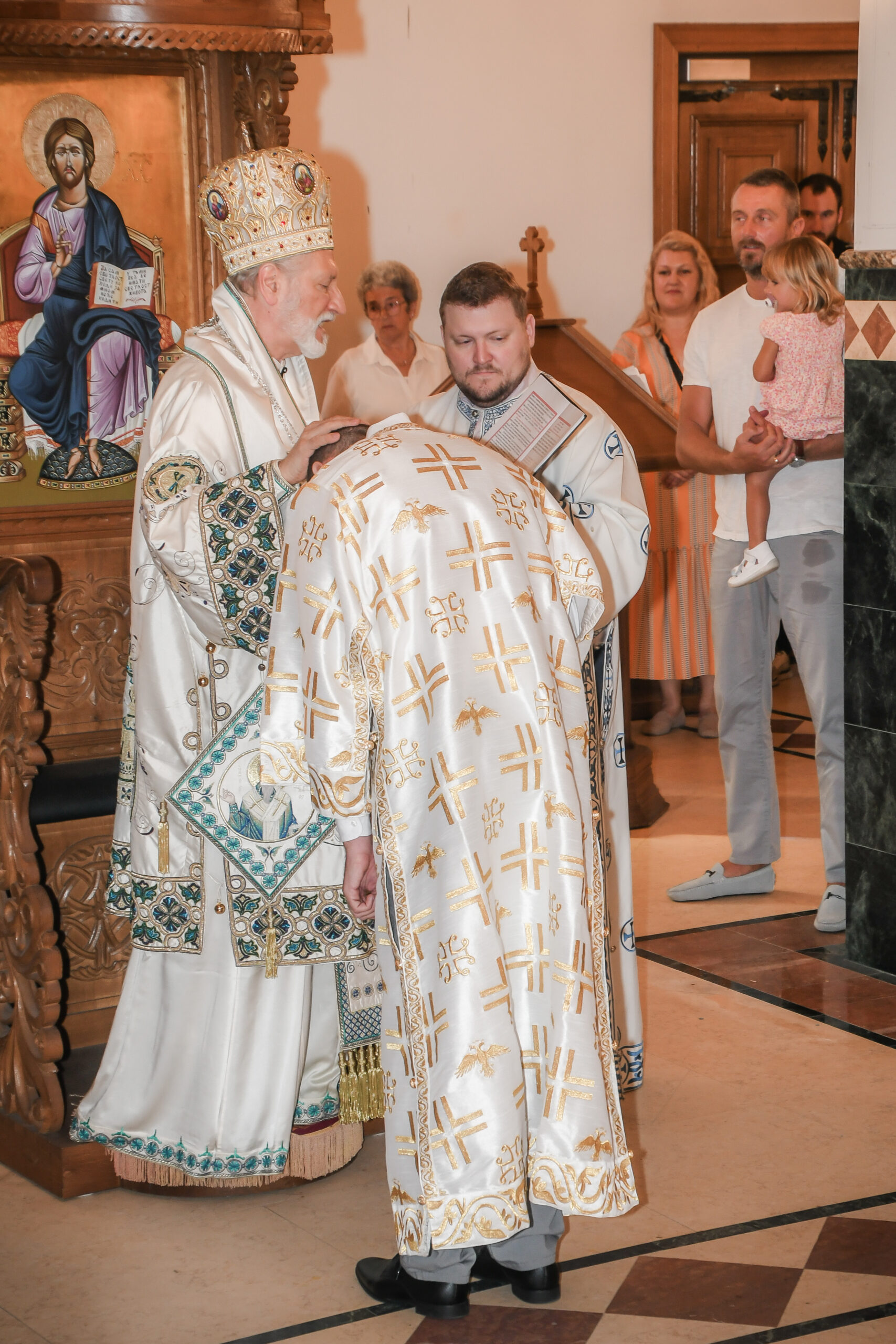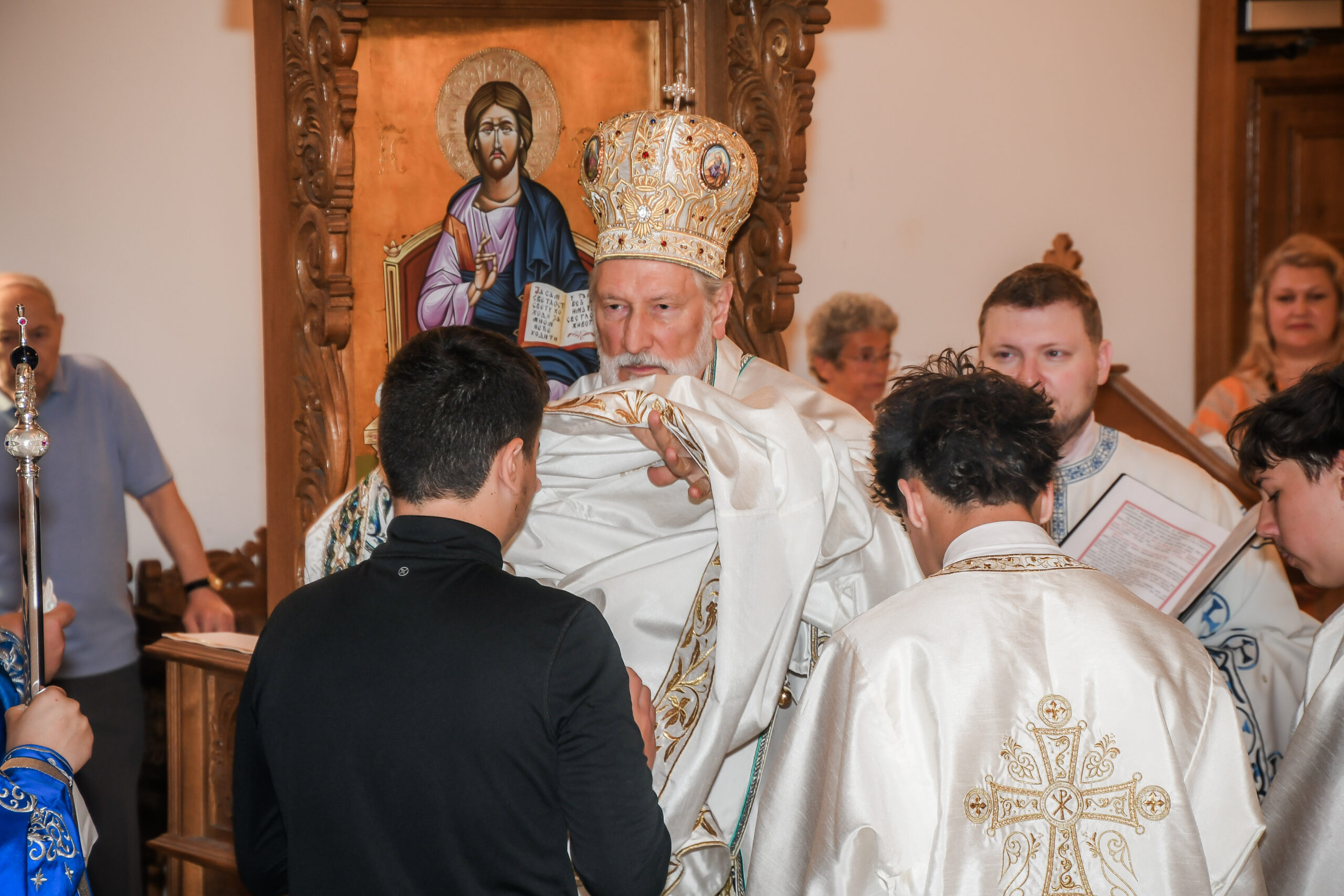 Овом лепом приликом, пред почетак Свете Литургије, Владика Иринеј произвео је младу господу Вука Веселиновића, Максима Ждралића и Луку Мутлака у чин свећеносца, а господина Гјоргија Стојанова у чин чтеца. У краткој беседи после рукопроизвођења, Преосвећени им је честитао на ступању у чин, и пожелео им да часно и вредно служе својој Цркви.