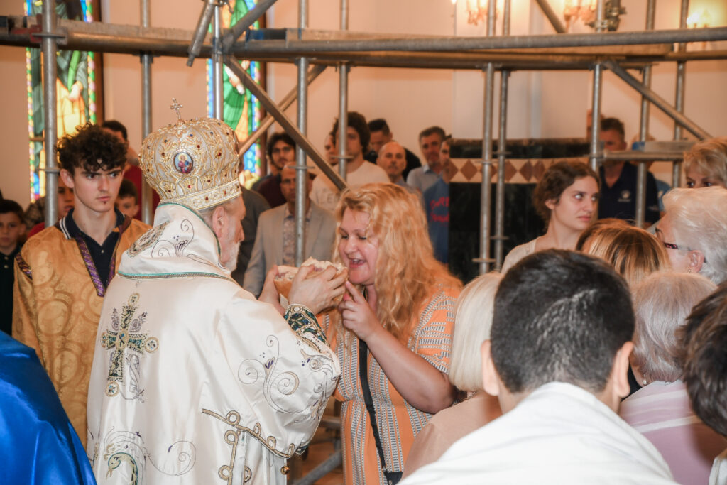 After the Prayer Behind the Ambo, the festal bread – kolach was cut, with the participation of the gathered sisters. The honored kuma – hostess of this celebration was Miss Adrijana Dragić, and next year’s kuma will be Mrs. Sara Simić Kafi.